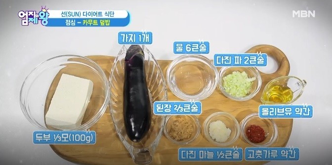 재료: 카무트 현미밥 1공기, 가지 1개,