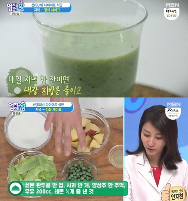 노폐물 배출에도 도움을 준다고 합니다.내몸사용설명서 10월9일✖️322회 다이어트 건강 성인병 가을 뱃살 허리둘레 사망위험 뱃살커트 아보카도 바나나 소이빈 당근 사과