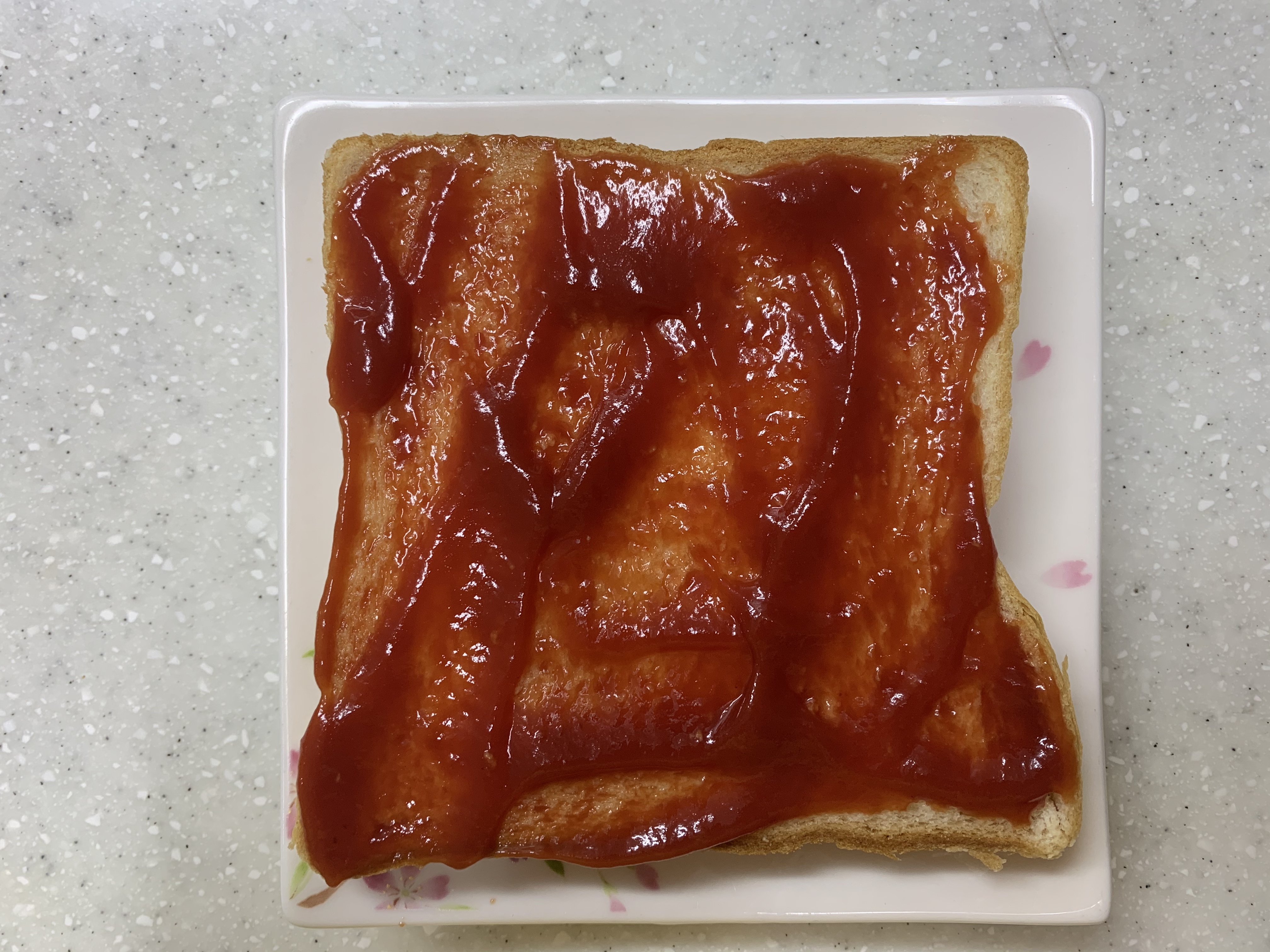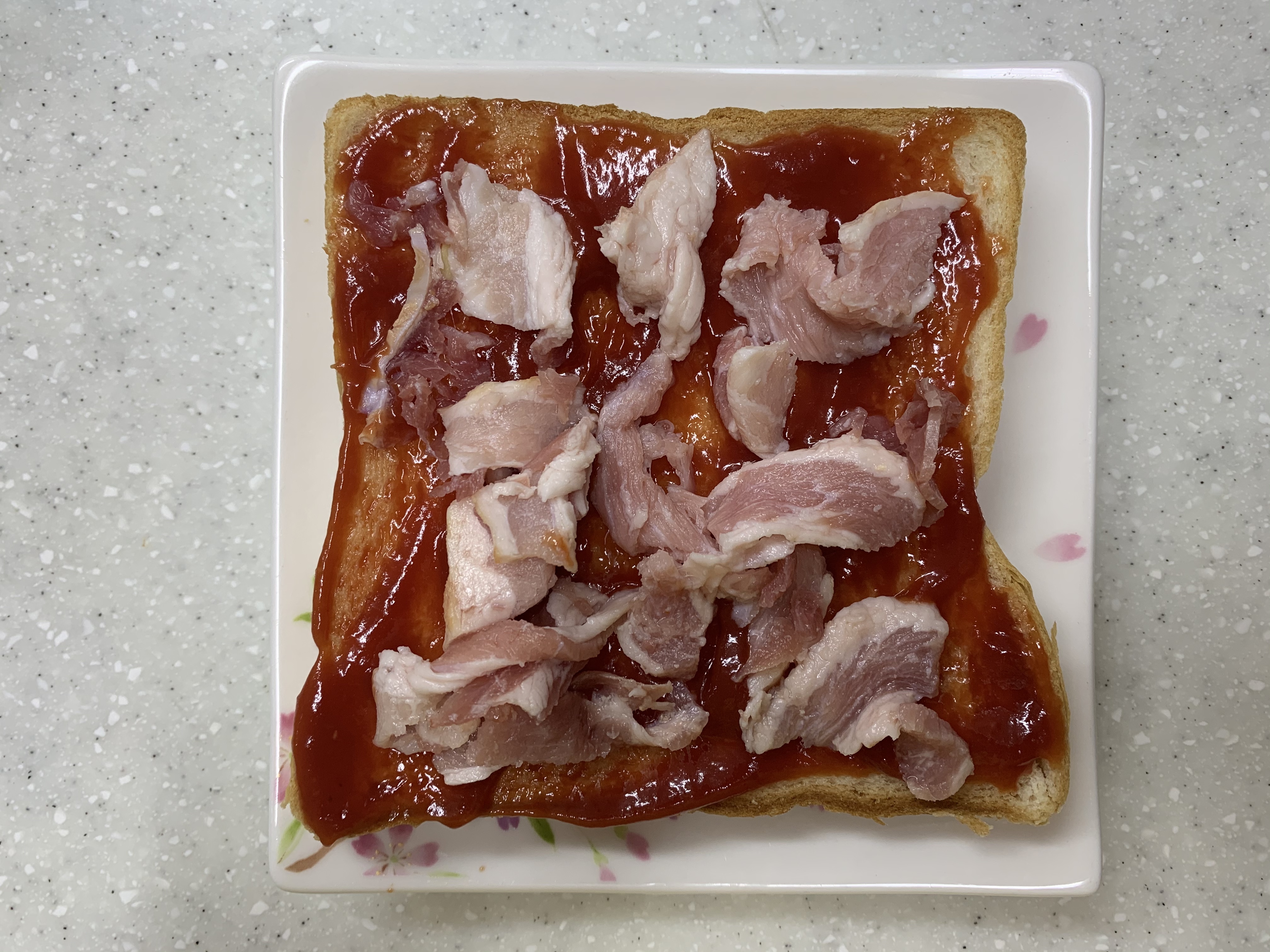 케챱도 듬뿍듬뿍 발라요! 🐷2. 토막낸 베이컨을 올린다.