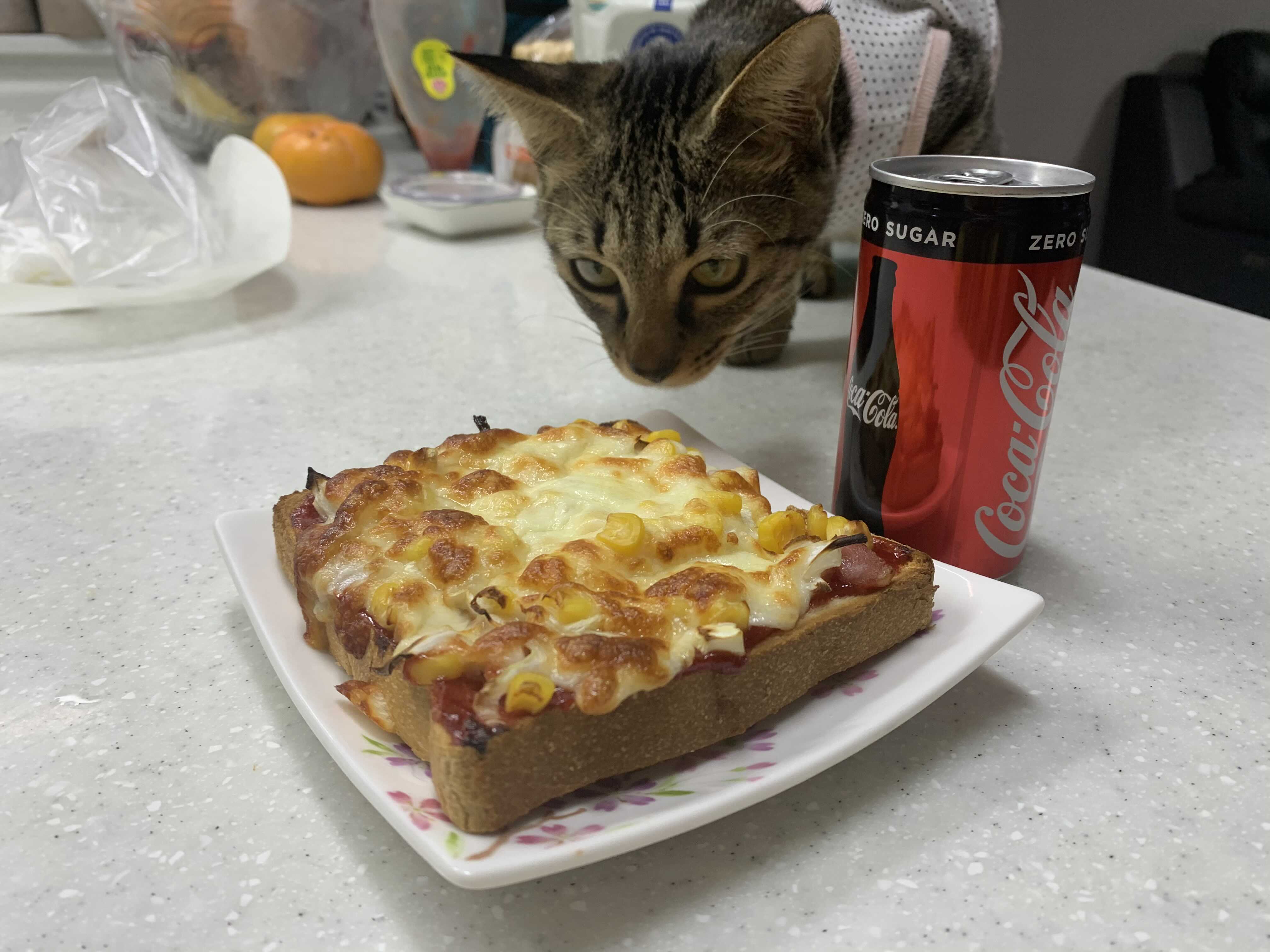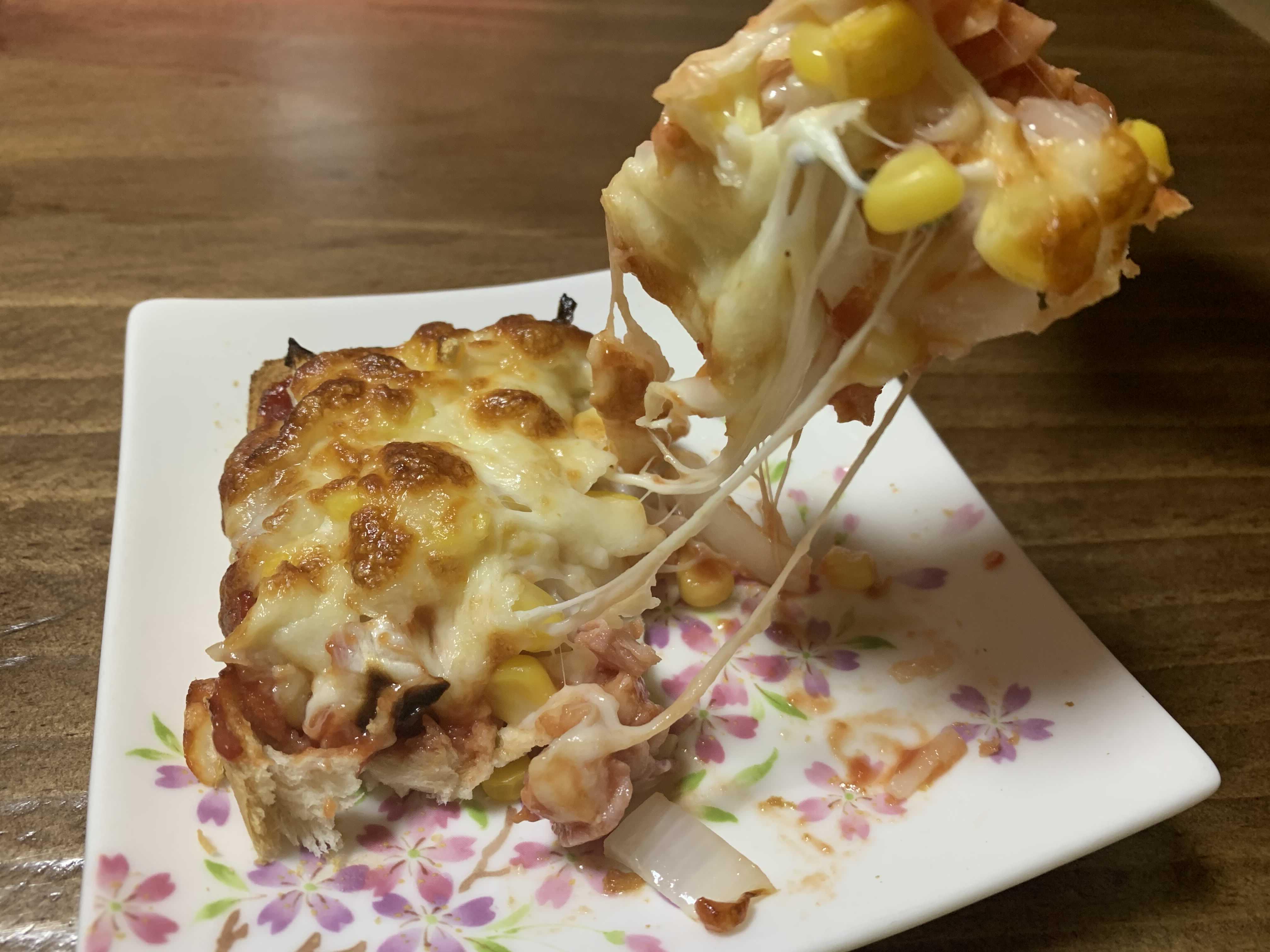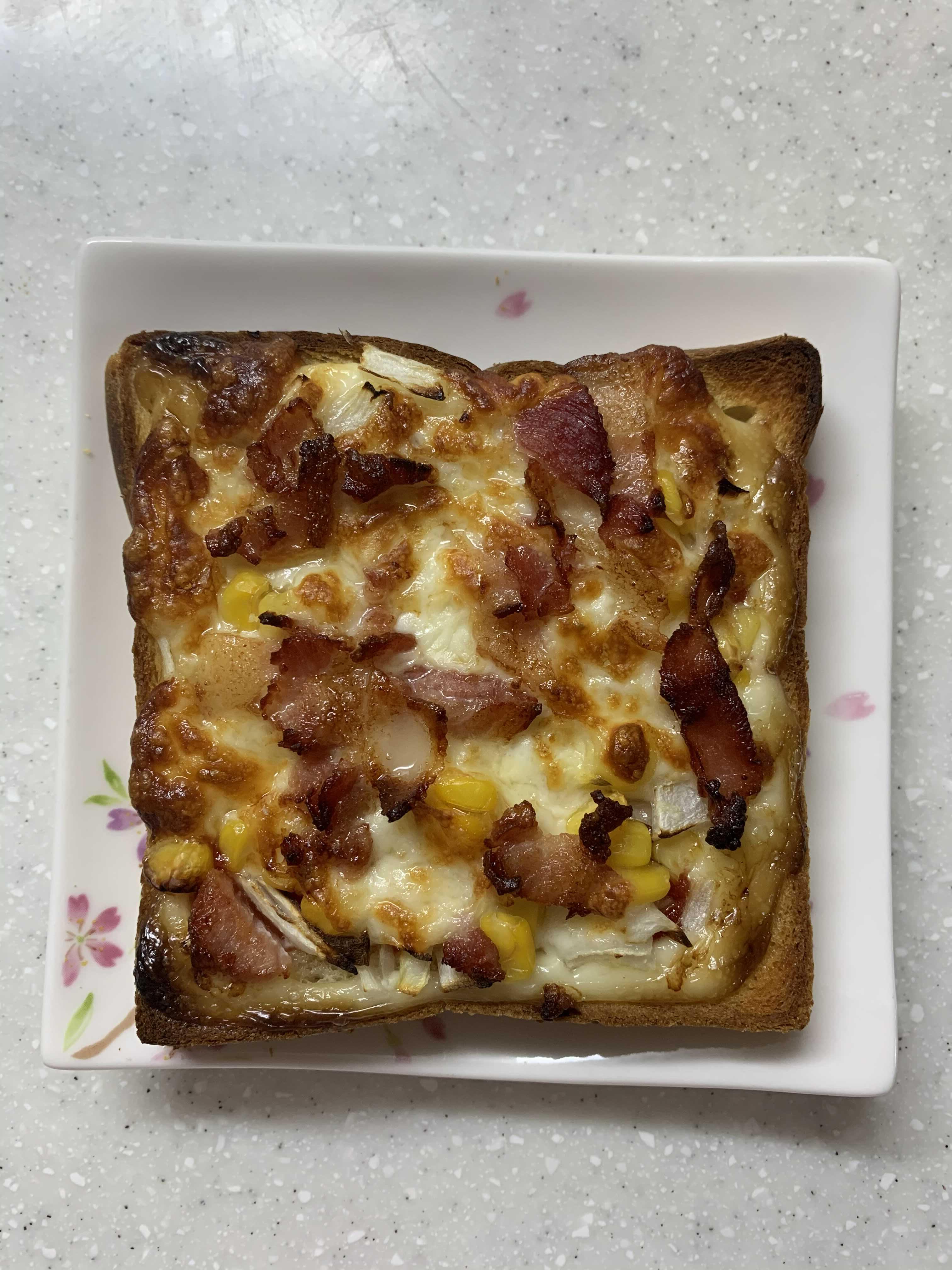 냉장고 파먹기를 해요!재료: 식빵, 케챱, 양파, 캔옥수수, 베이컨, 모짜렐라치즈