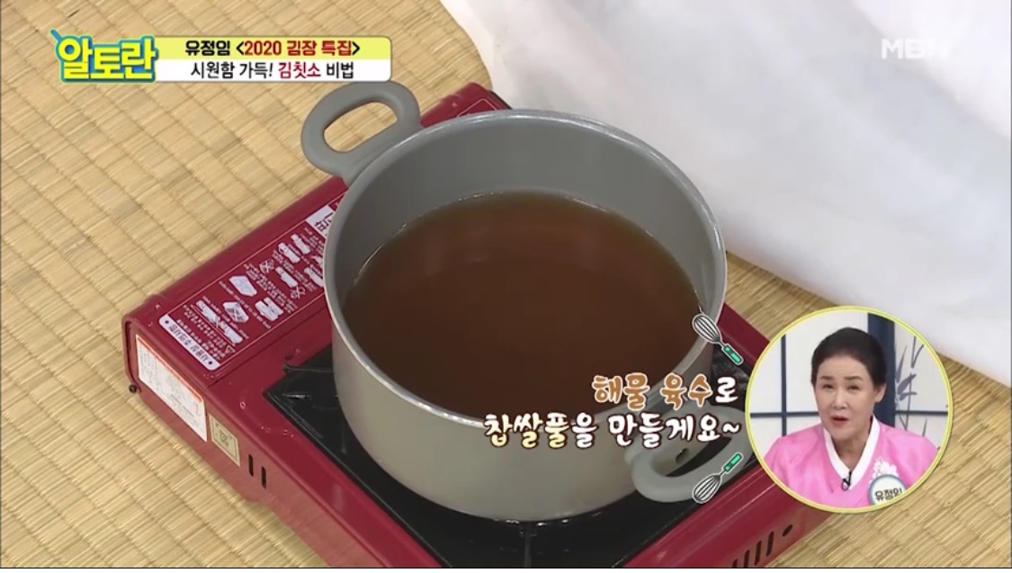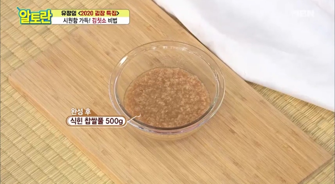비법 찹쌀풀이라고 하는 거예요.깊고 시원한 김치 맛을 위하여