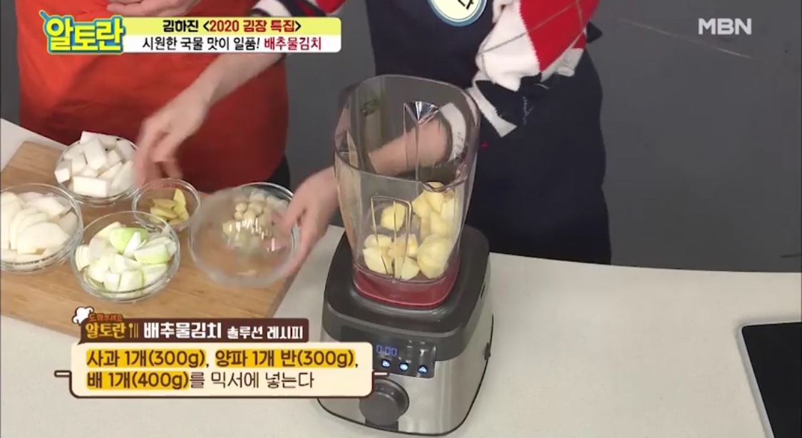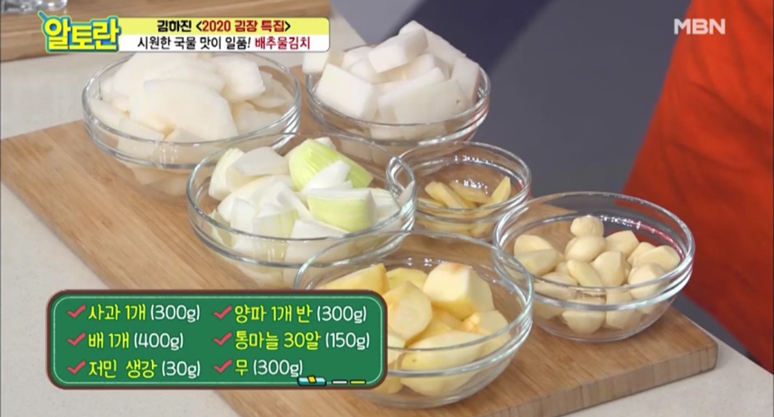 저민생강 30g, 무 300g4. 사과 1개, 양파 1개 반, 배 1개를
