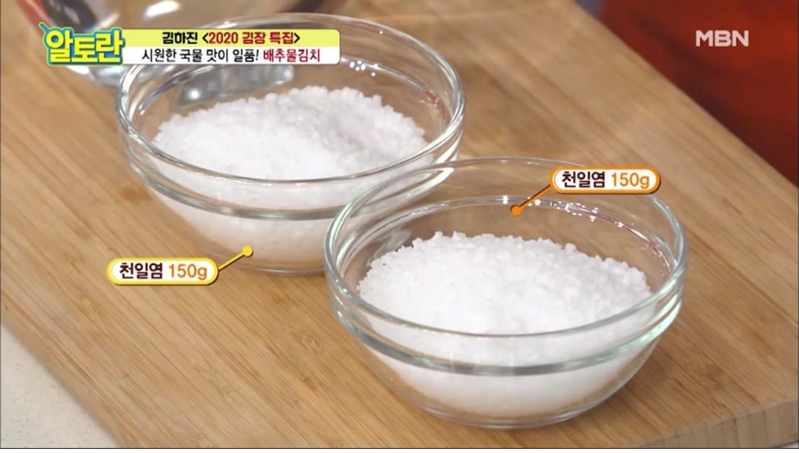 3. 배추 줄기에 남은 천일염 150g을 나눠서