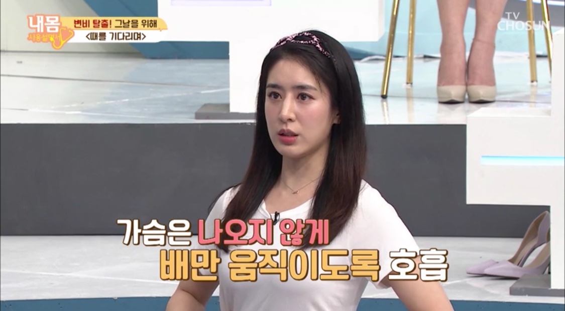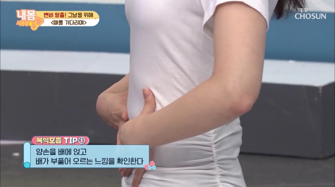 가슴은 나오지 않게 배만 움직이도록 호흡해