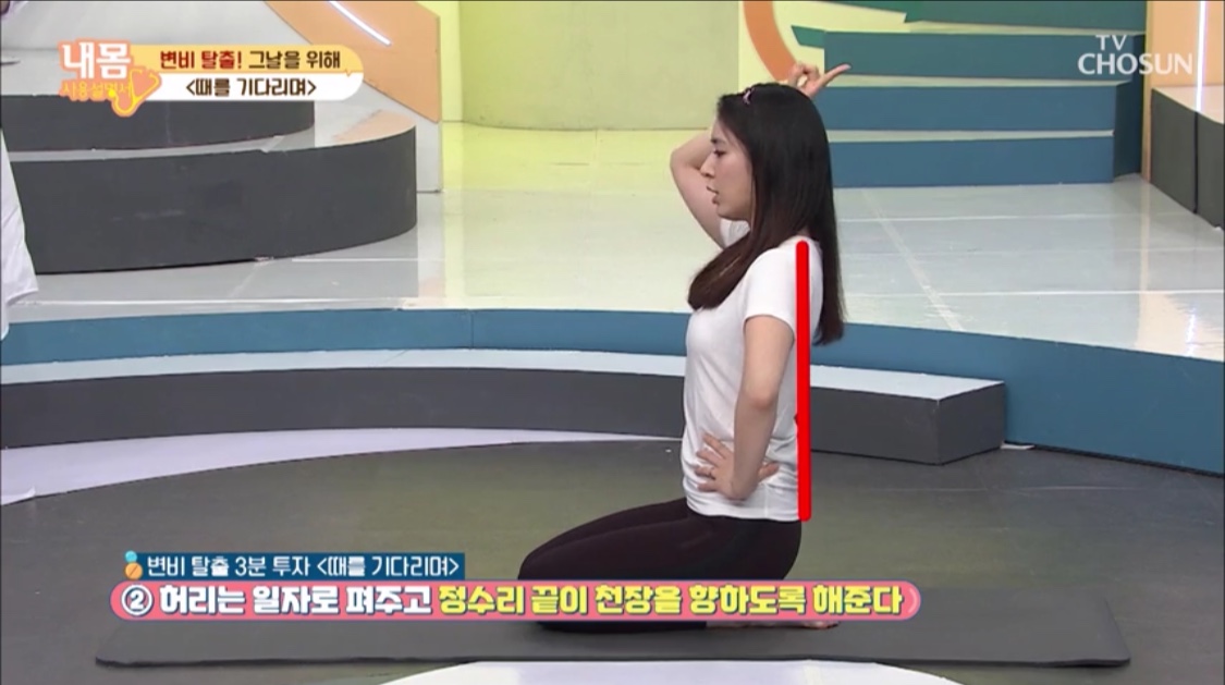 2. 허리는 일자로 펴주고 정수리 끝이 천장을