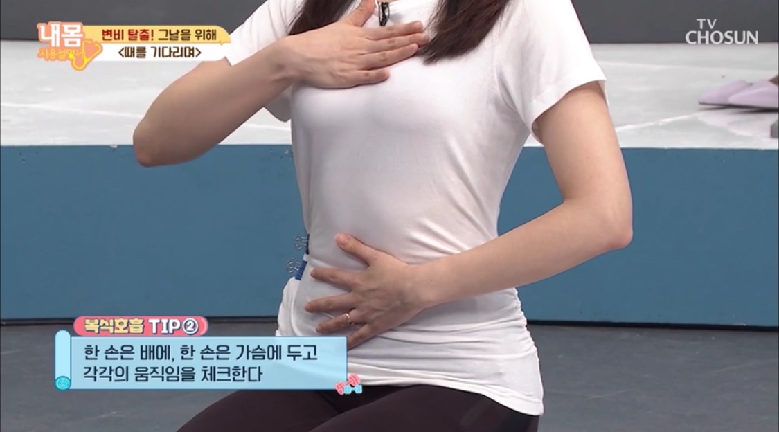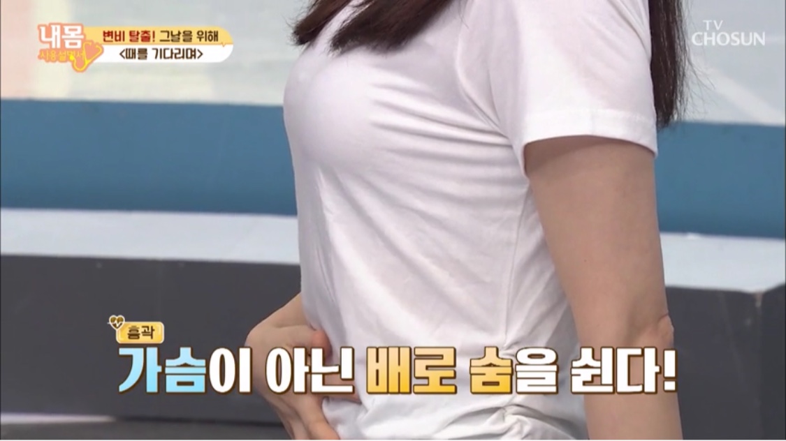 가슴은 나오지 않게 배만 움직이도록 호흡해