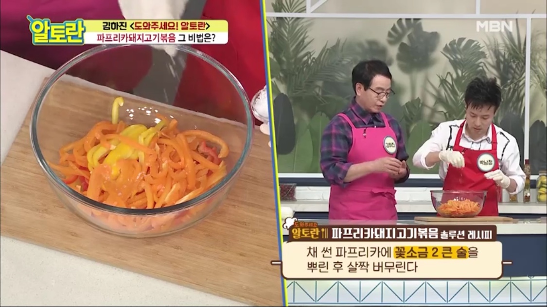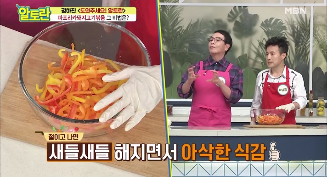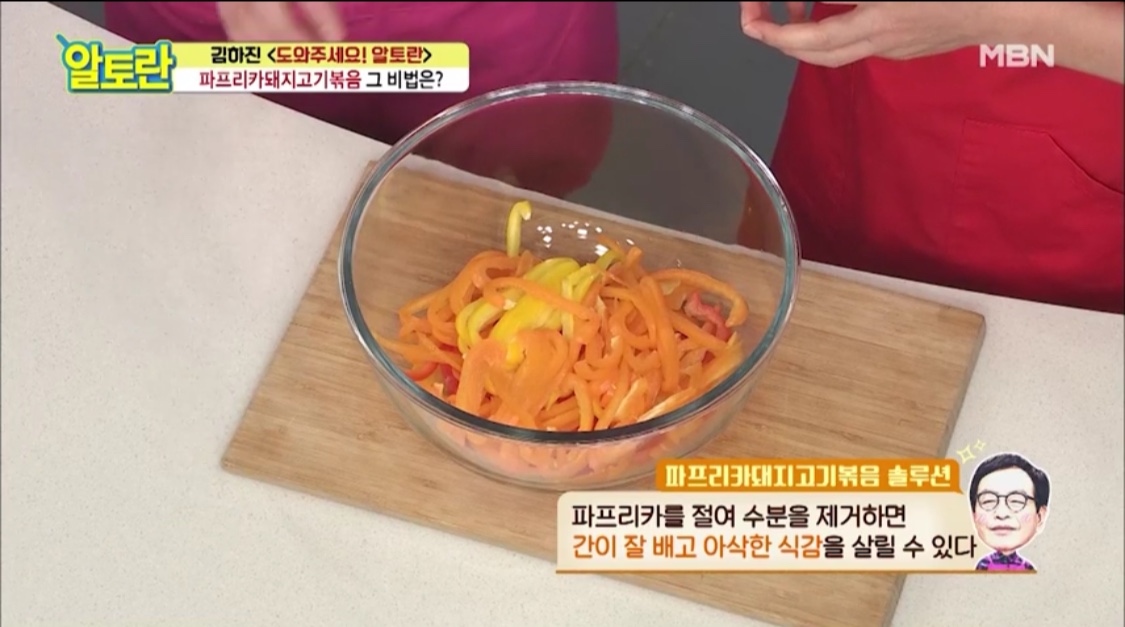 그래서 소금에 절일 거예요.Tip. 파프리카를 절여 수분을 제거하면