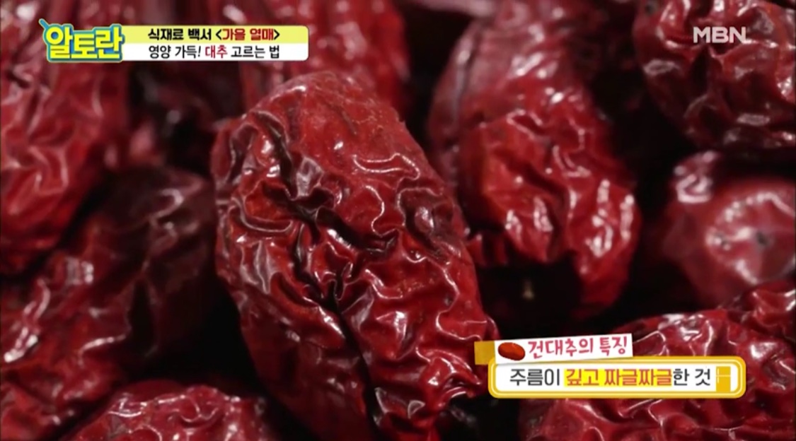 주름이 적어 탱탱한 건대추는 덜 마른 것이에요.