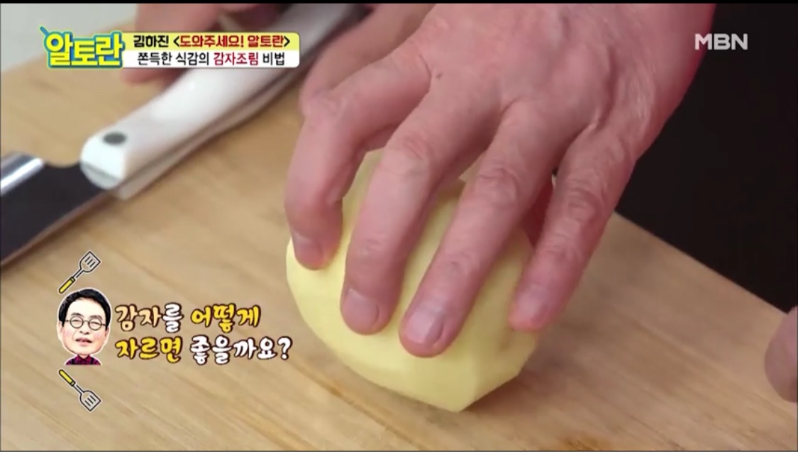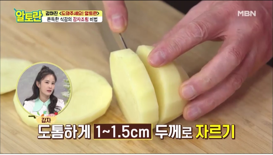감자는 도톰하게 1~1.5cm 두께로 잘라요.