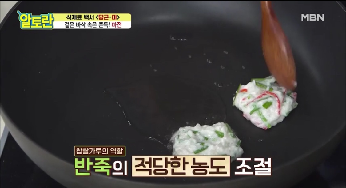 찹쌀가루로 반죽의 농도를 적당히 했어요.