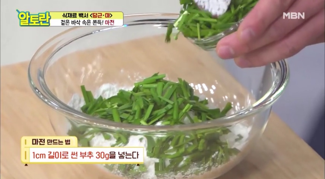 3. 1cm 길이로 썬 부추 30g을 넣는다.