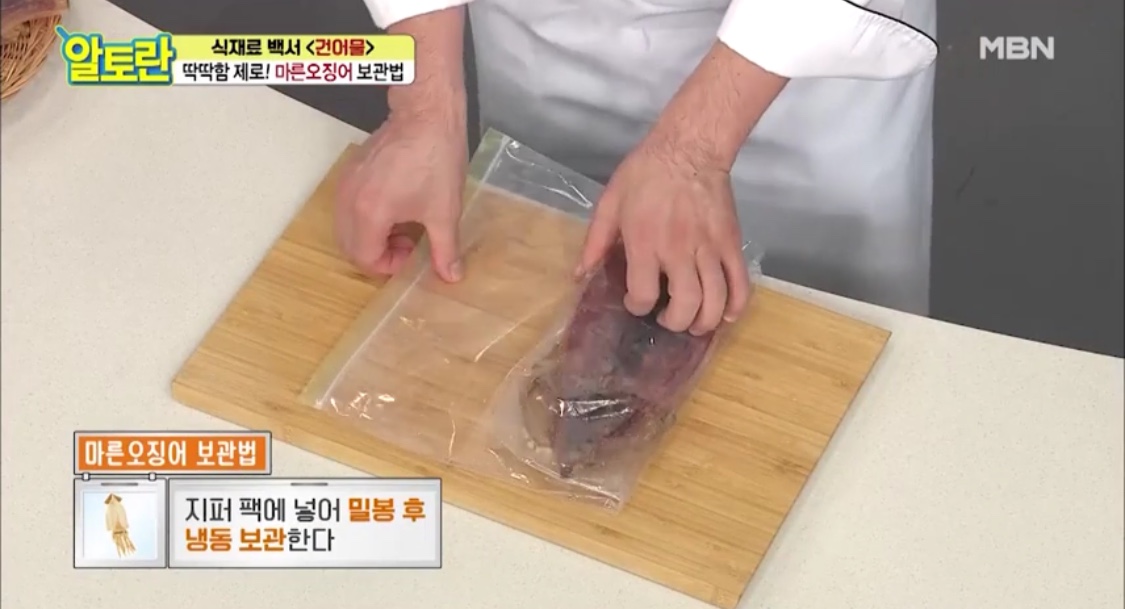 마른오징어에만 해당돼요.Tip. 물을 뿌려 보관하면 수분 증발을 막아