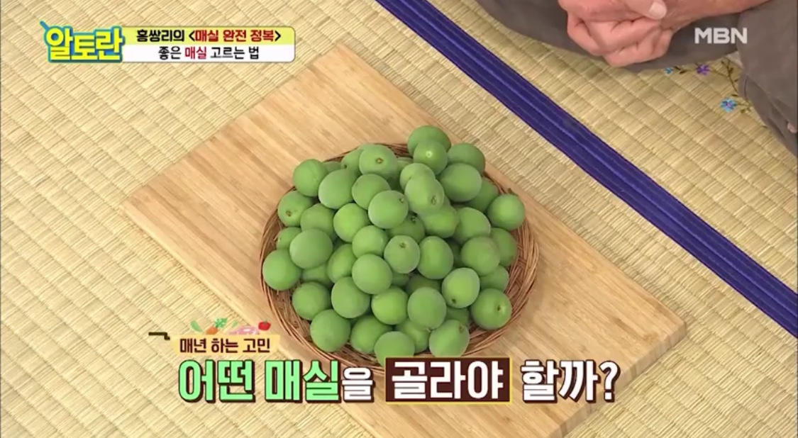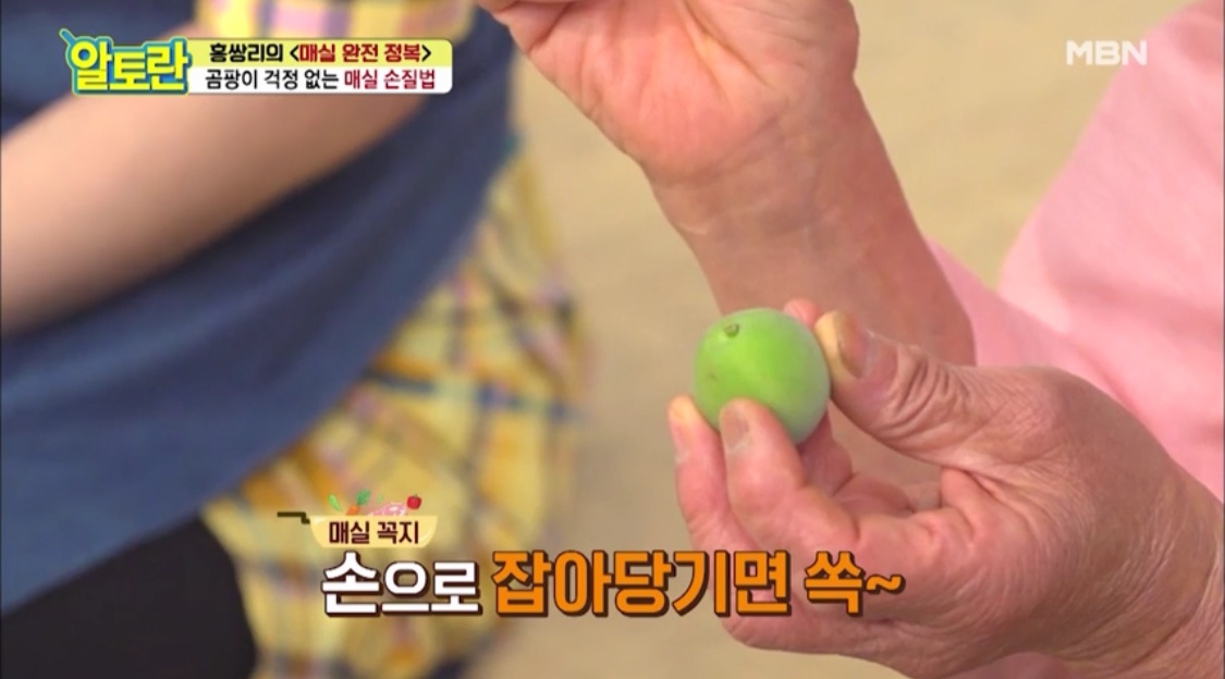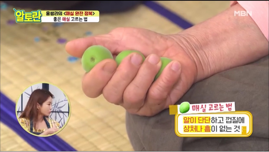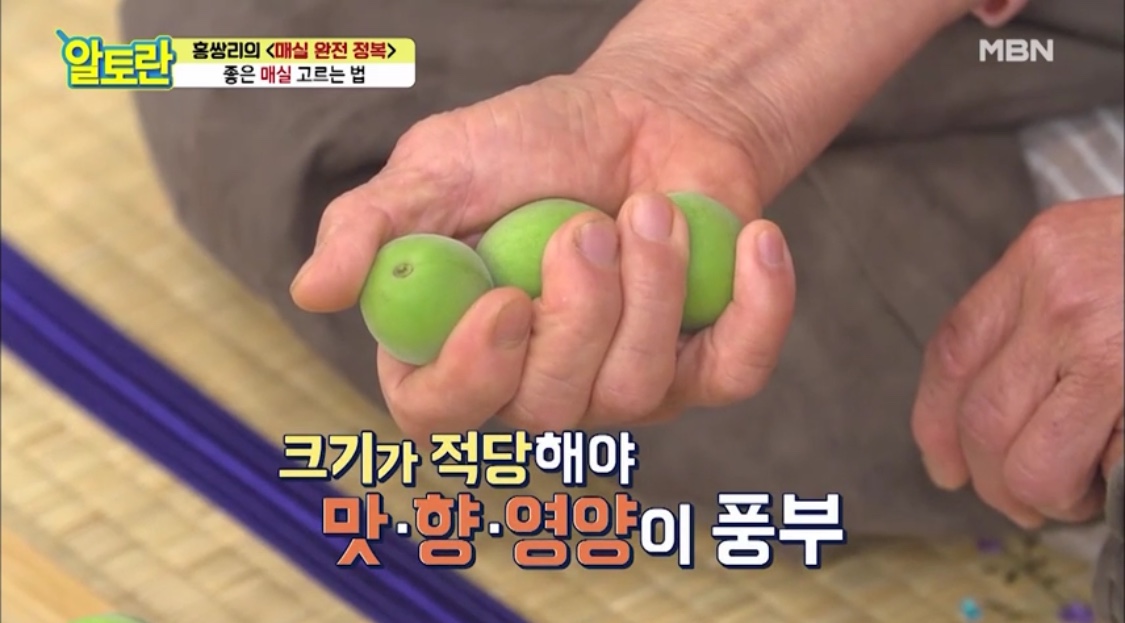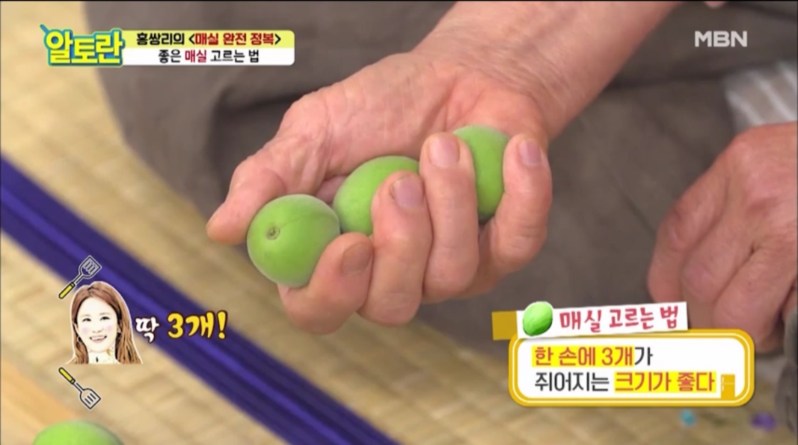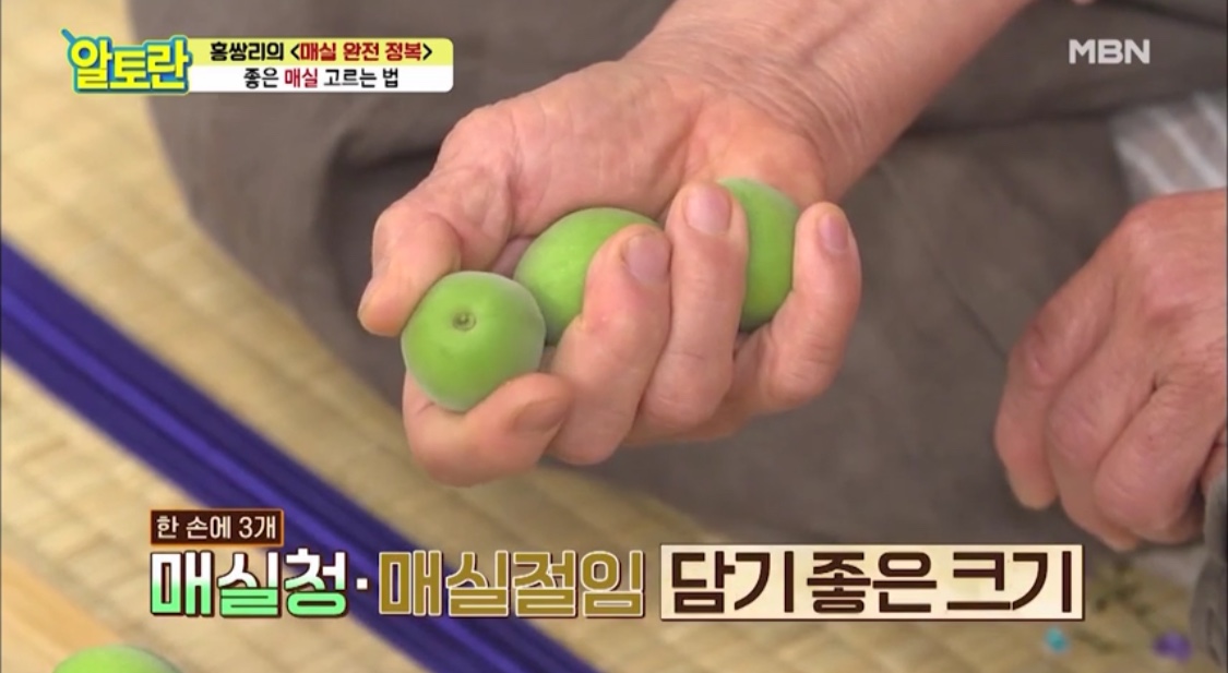 좋은 매실 고르는 법은 뭘까요?첫 번째. 한 손에 3개가 쥐어지는 크기