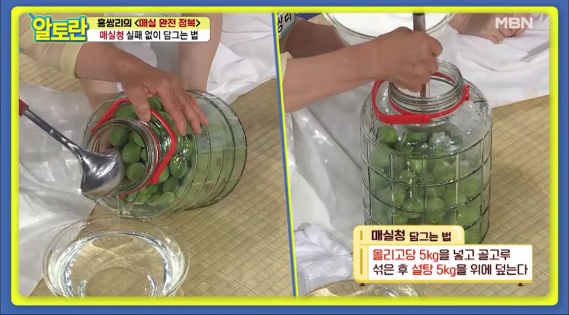 손질한 매실 10kg을 넣는다.2. 올리고당 5kg을 넣고 골고루 섞은 후
