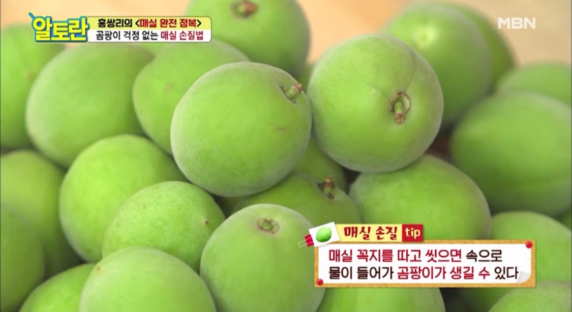 속으로 물이 들어가 곰팡이가 생길 수 있어요.매실 꼭지는 꼭 씻은 후에 딸 것!!