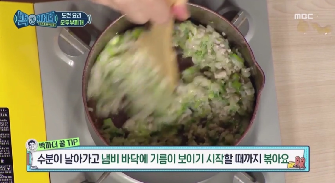 기름이 보이기 시작할 때까지 볶아주세요.순두부찌개 재료 볶기