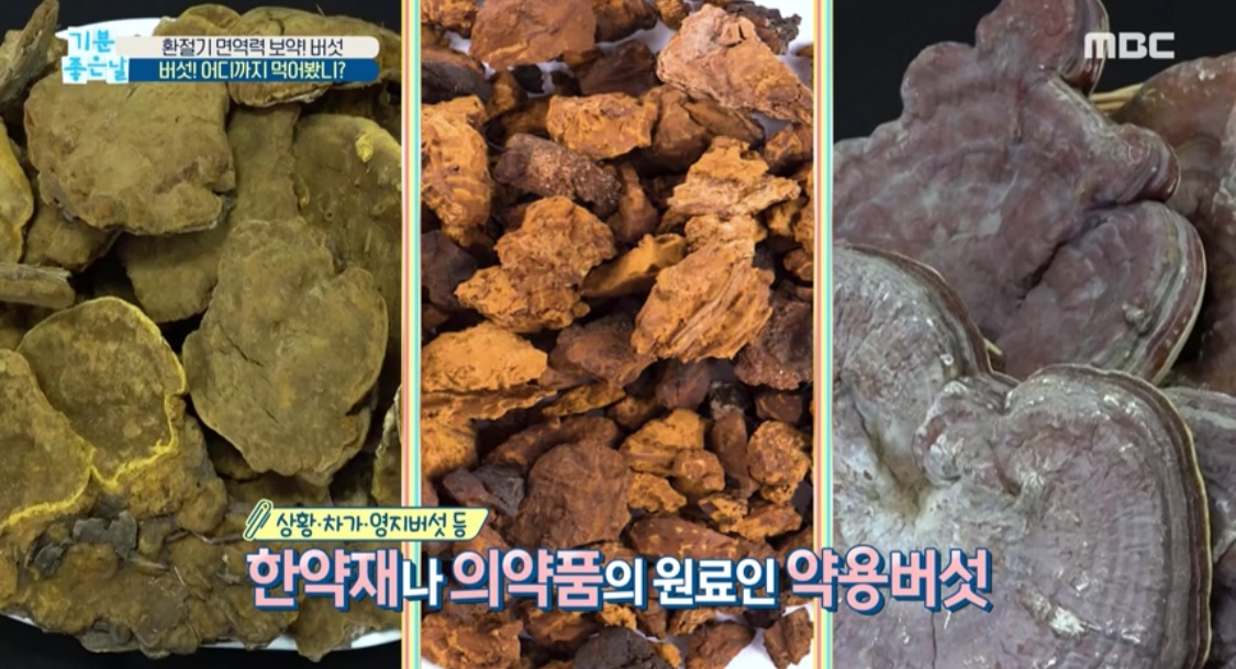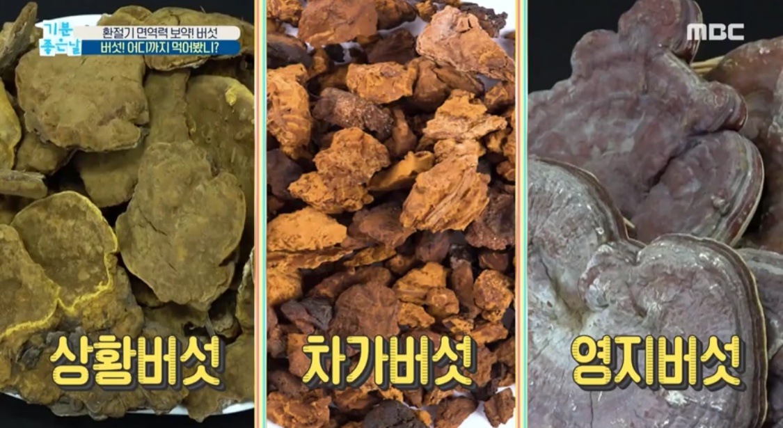 상황버섯, 차가버섯, 영지버섯이 있어요.