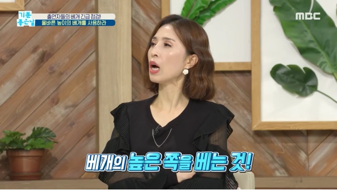 베개의 높은 쪽을 베는 것이 옳은 방법이에요.