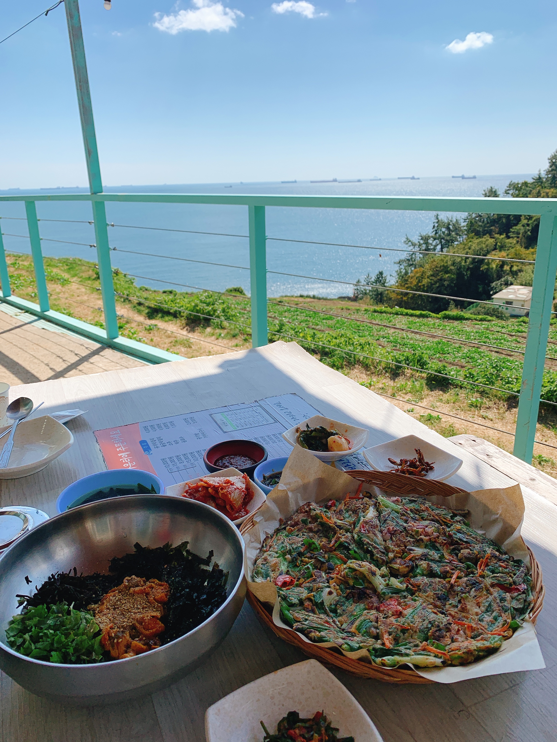 해물파전과 멍게비빔밥, 해물칼국수를 주문했다.