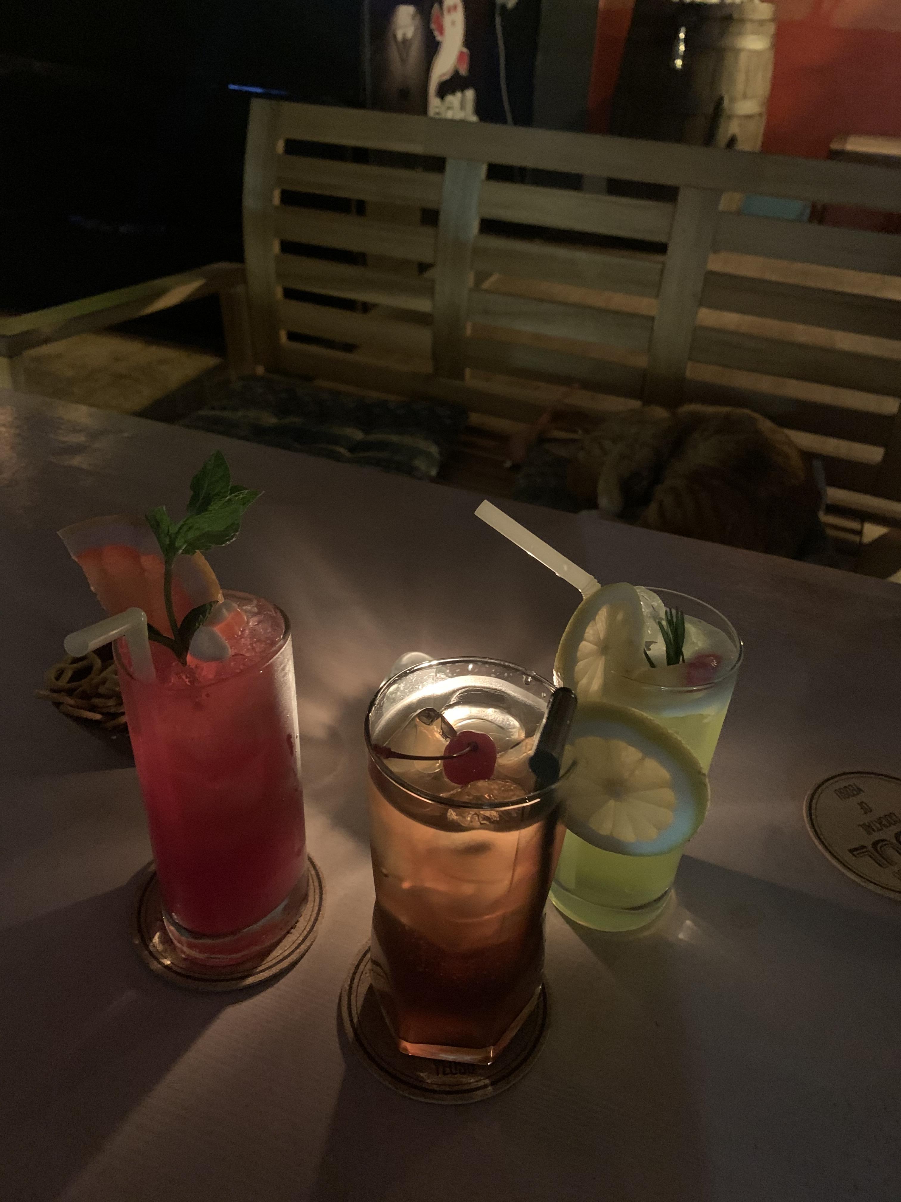 오래 있지는 않고 칵테일 한잔만 마시고고양이랑 놀다왔다.