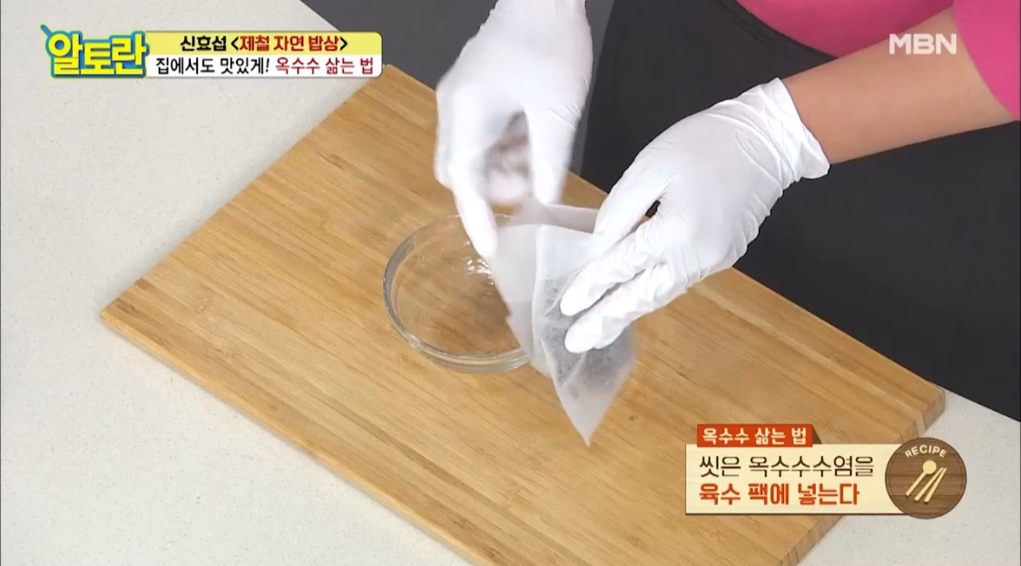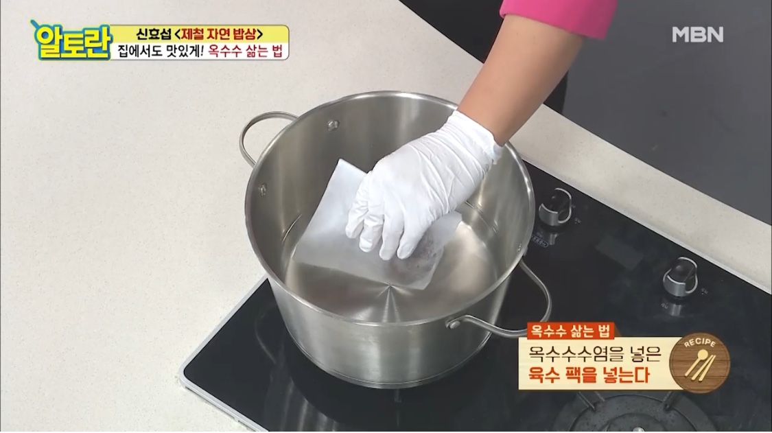 -> 삶는 방식을 추천7. 옥수수수염을 넣은 육수팩을 넣는다.