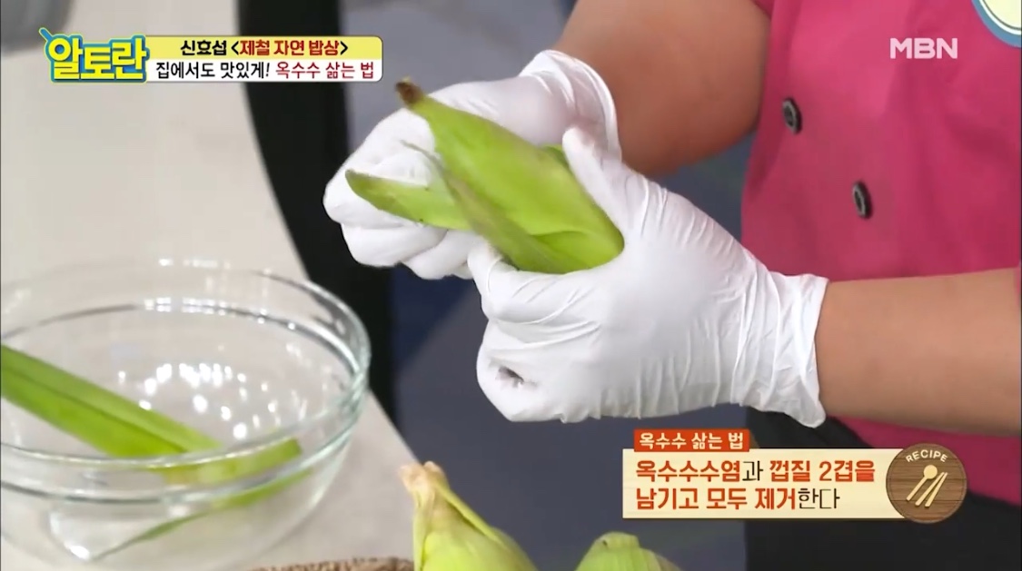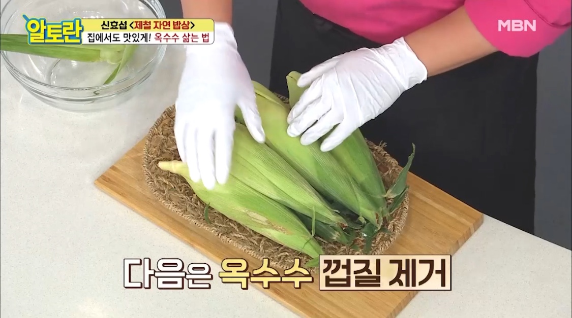 옥수수 껍질을 제거할때 꼭 2겹은 남겨주세요.껍질까지 제거가 되었다면