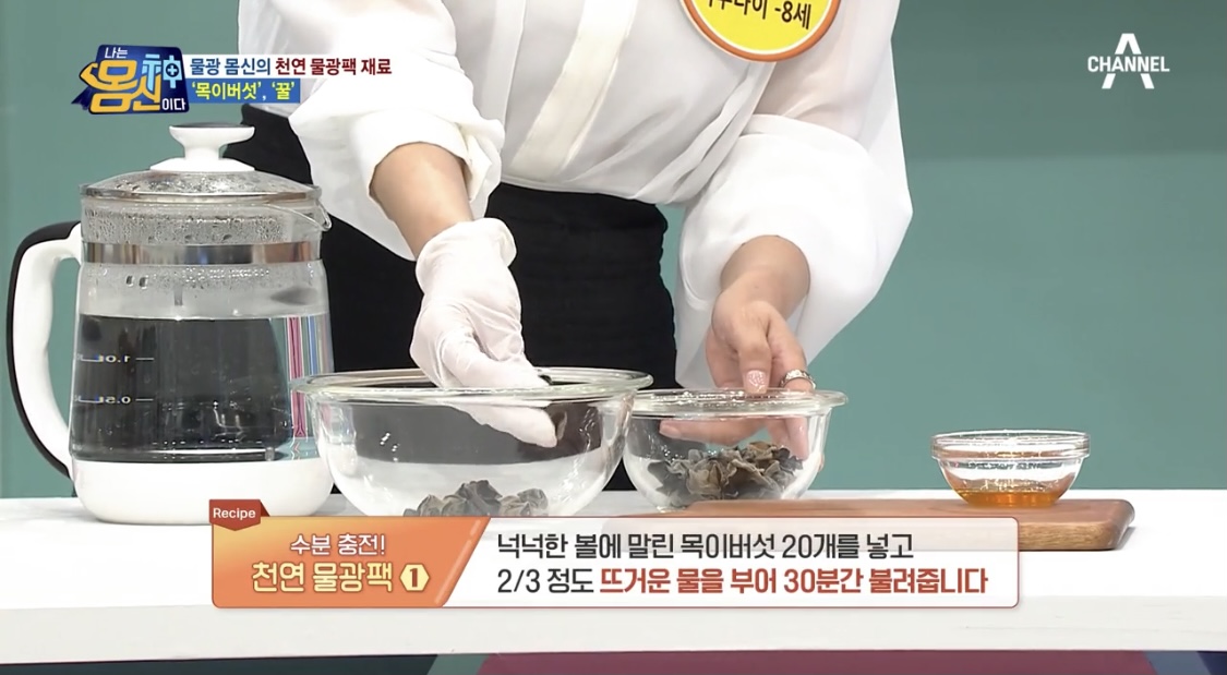 꿀 한 큰술을 준비해주세요.1. 넉넉한 볼에 말린 목이버섯 20개를 넣고