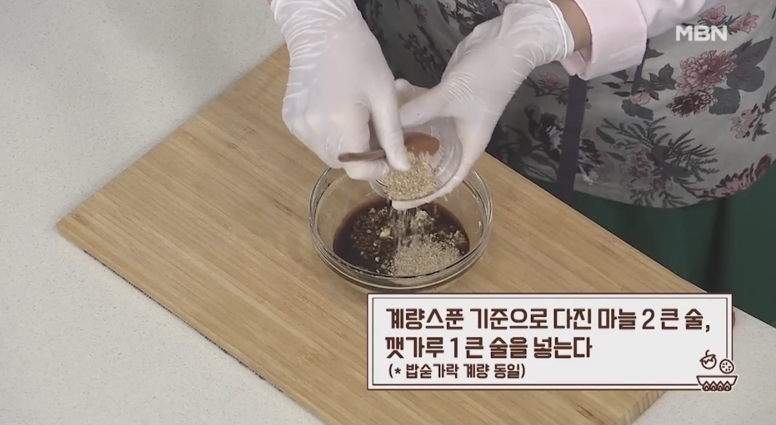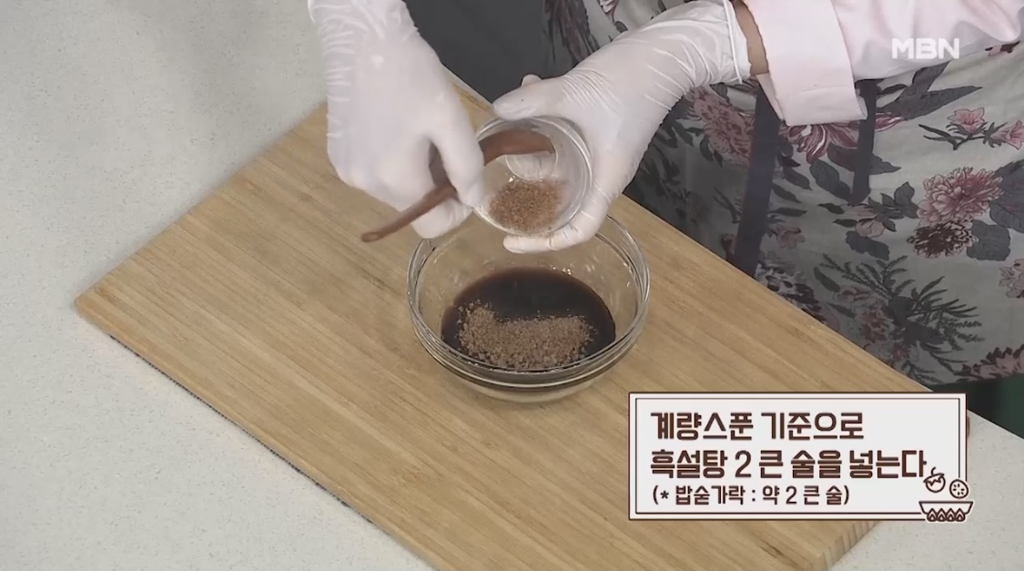 흑설탕: 밥숟가락 2큰술)10. 다진마늘 2큰술, 깻가루 1큰술을 넣는다.