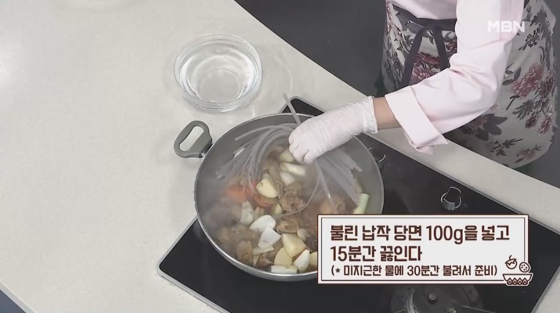 불린 납작 당면 100g을 넣고 15분간 끓인다.