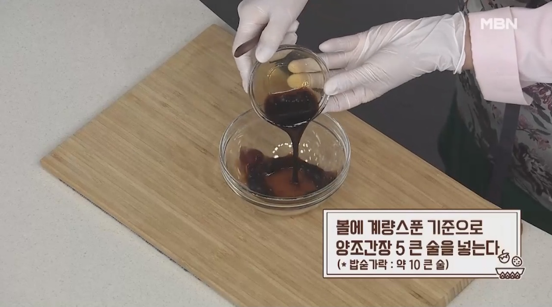 양조간장 5큰술, 맛술 3큰술을 넣는다.