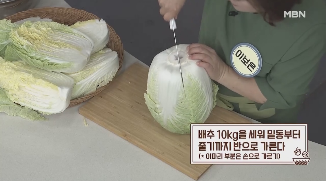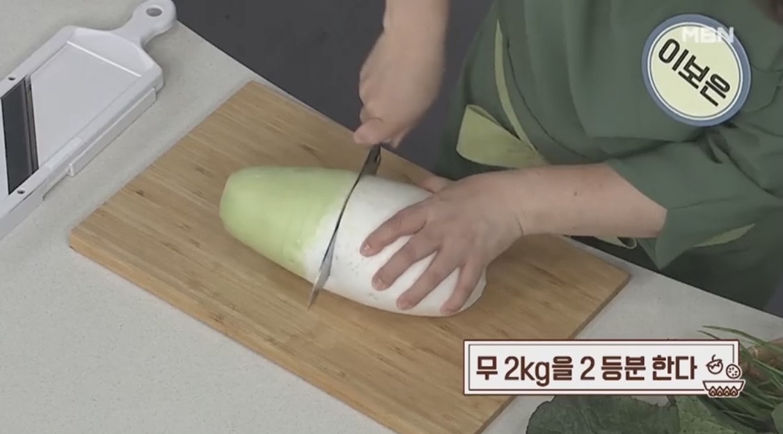(* 배추 크기에 따라 시간 상이)5. 2등분한 무 2kg을 슬라이스 칼을 이용해