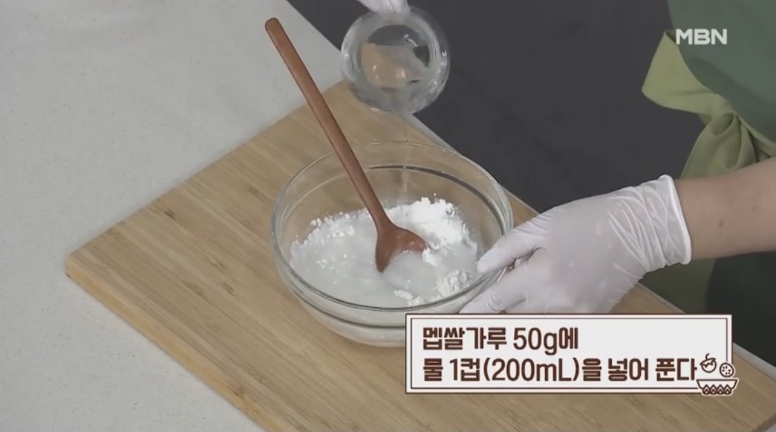 건져낸 후 불을 끈다.9. 멥쌀가루 50g에