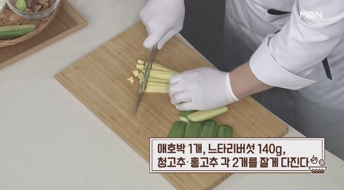 청고추와 홍고추는 각 2개씩 잘게 다진다.8. 들기름을 달군팬에 두르고