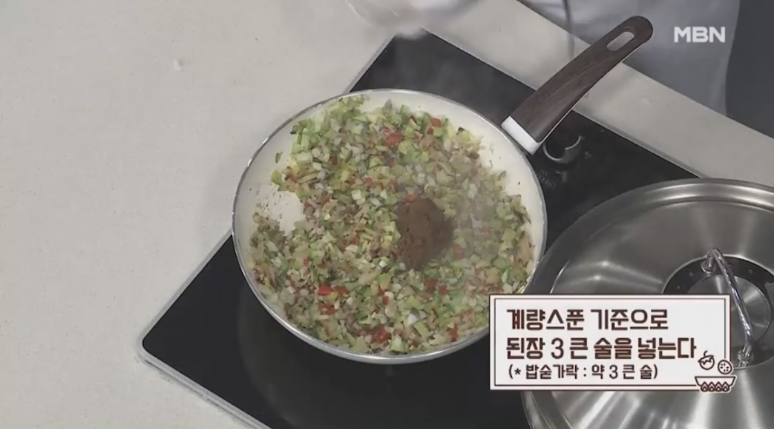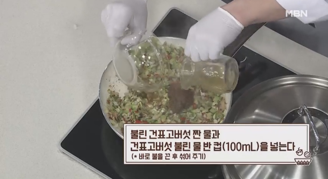 된장 3큰술을 넣는다.10. 표고버섯을 불린 물을 100ml넣고
