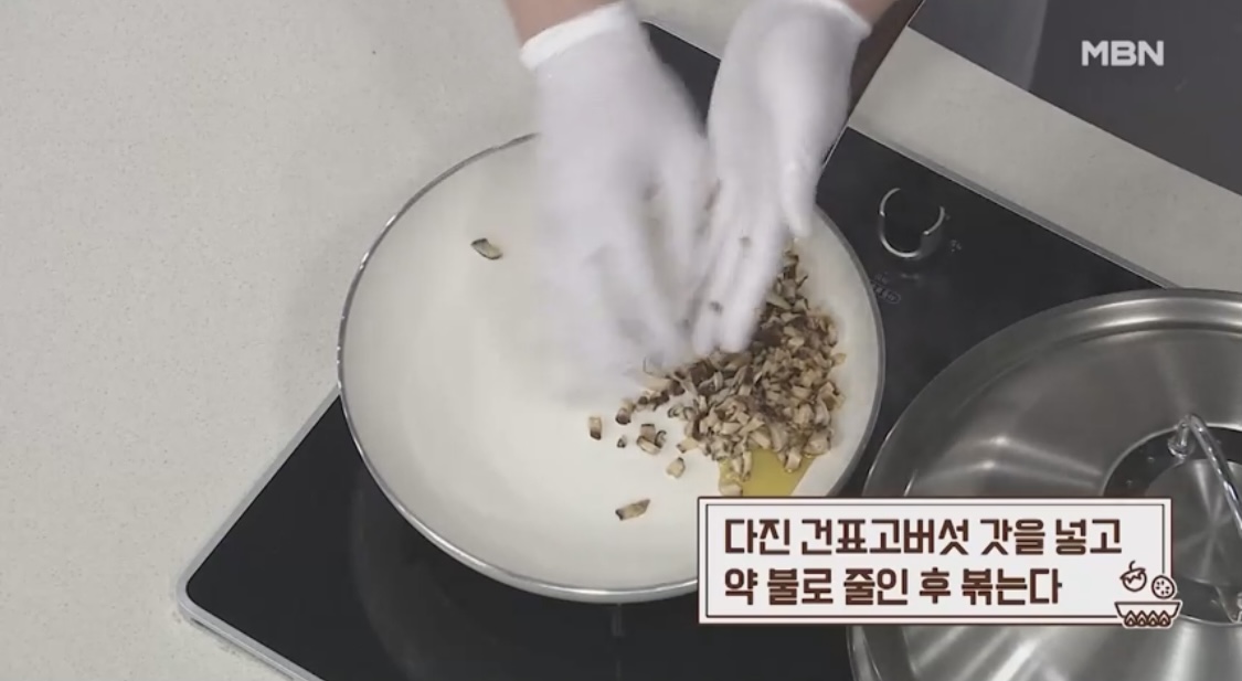 버섯의 갓부분을 넣어 약불로 줄여 볶은 후