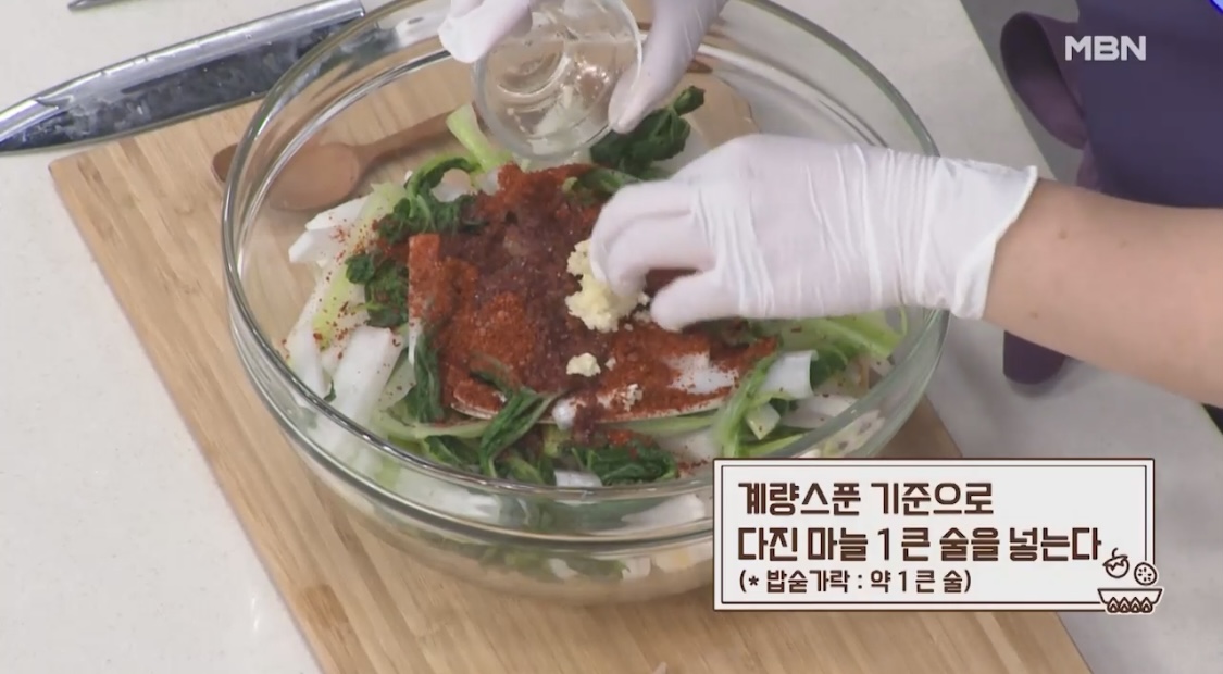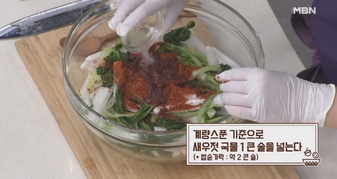 국간장 2큰술을 넣는다.7. 다진마늘 1큰술, 새우젓 국물 1큰술,