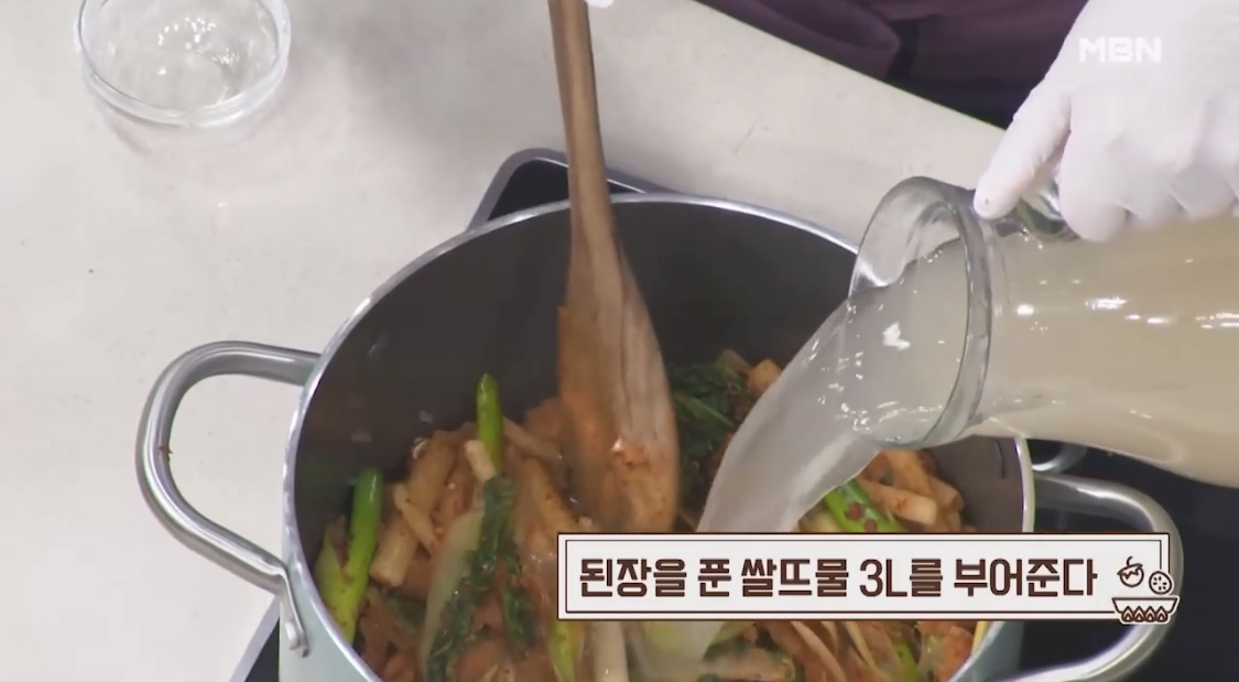 3L 쌀뜨물에 된장 반큰술을 넣고 섞은 후
