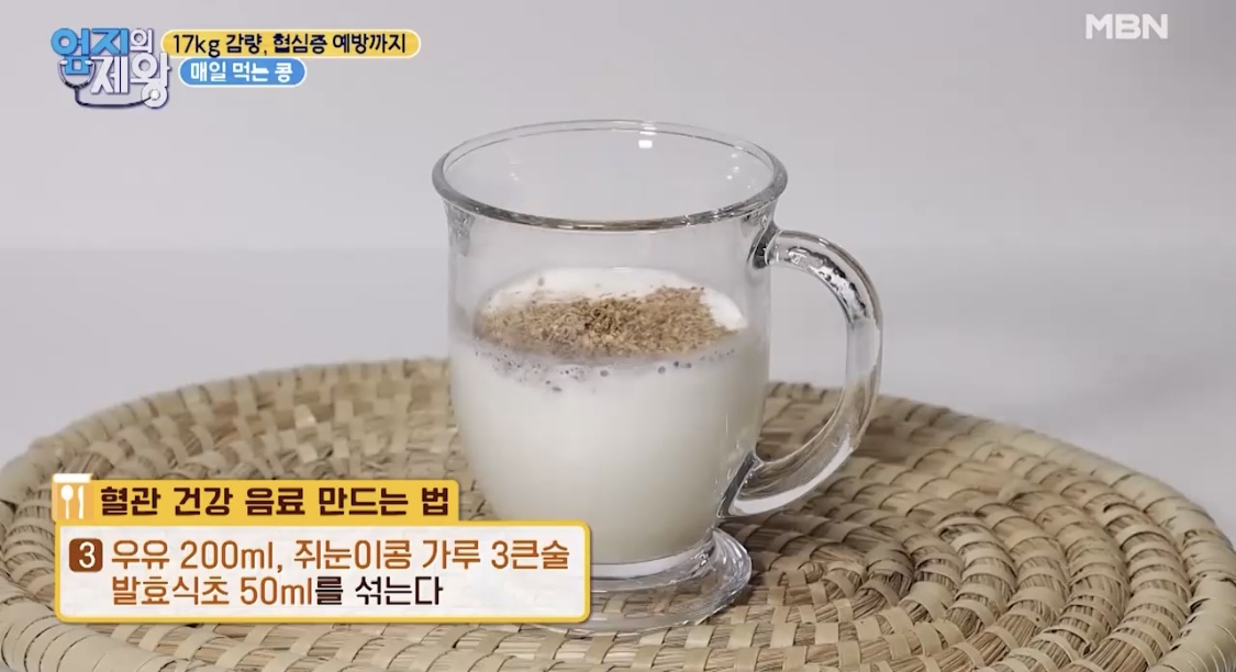 3. 우유 200ml, 쥐눈이콩 가루 3큰술,
