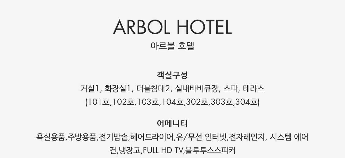 객실내 개인 스파가 있는 ‘아르볼호텔’ 이었다.
