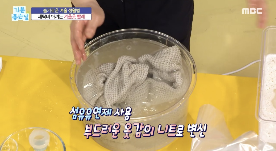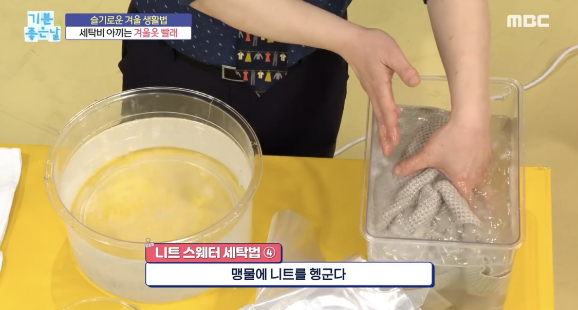 미지근한 물에 담근 니트는 금세 때가 빠져요.