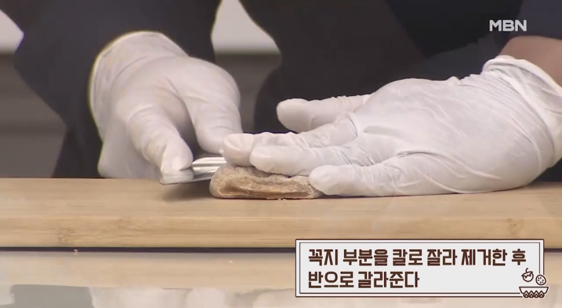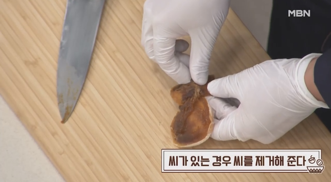 1. 곶감 꼭지 부분을 칼로 잘라 제거한 후