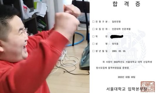 아들 정지웅의 서울대 합격 소식을 알렸다.