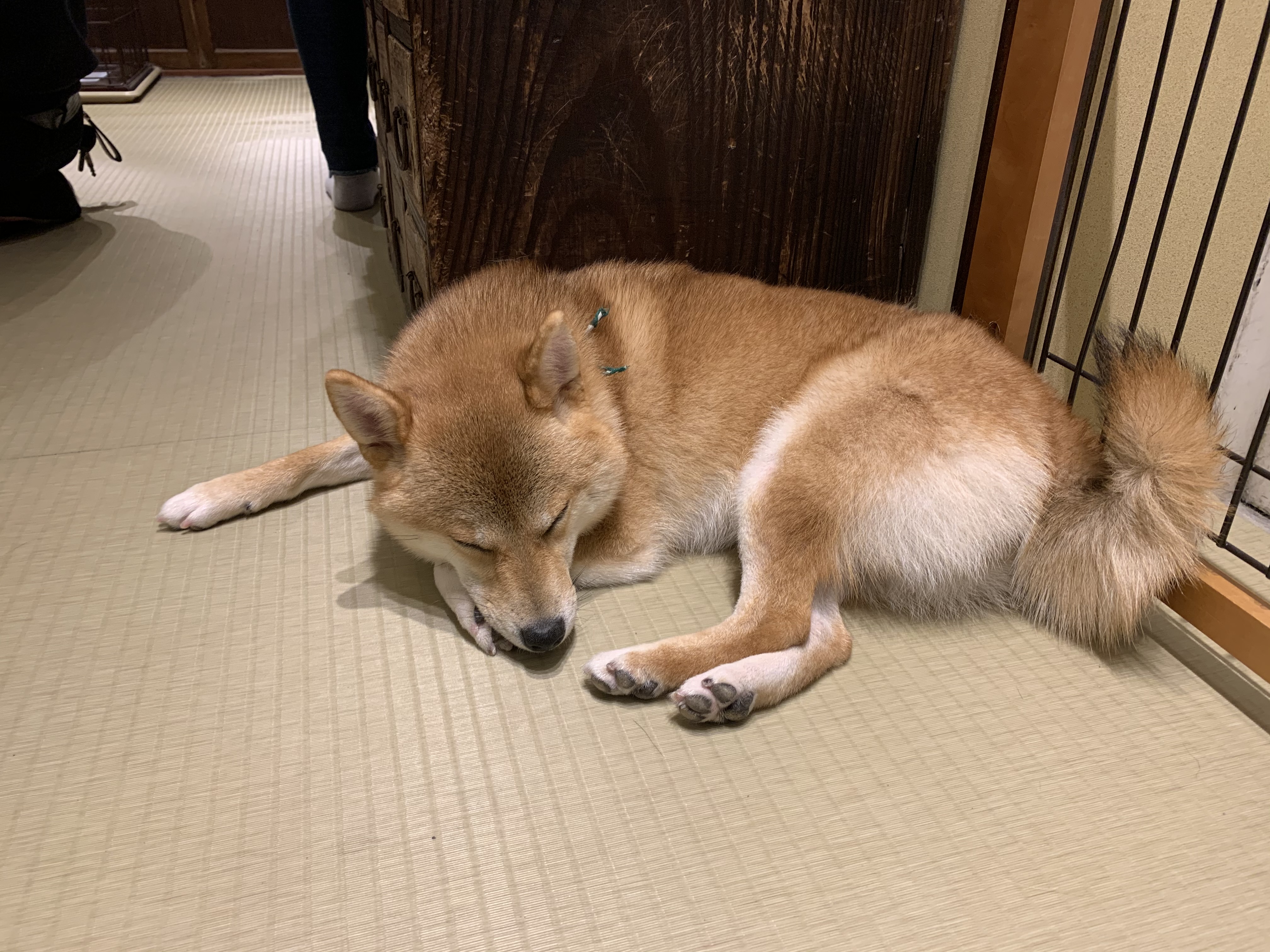 사람이 없는 구석으로 가서 잠을 청한다.보자기 두른 시바댕댕이 너무 귀여워