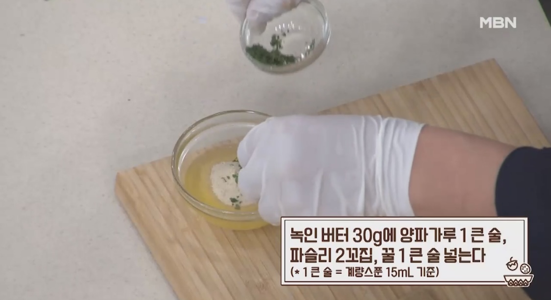 2. 녹인 버터 30g에 양파가루 1큰술,
