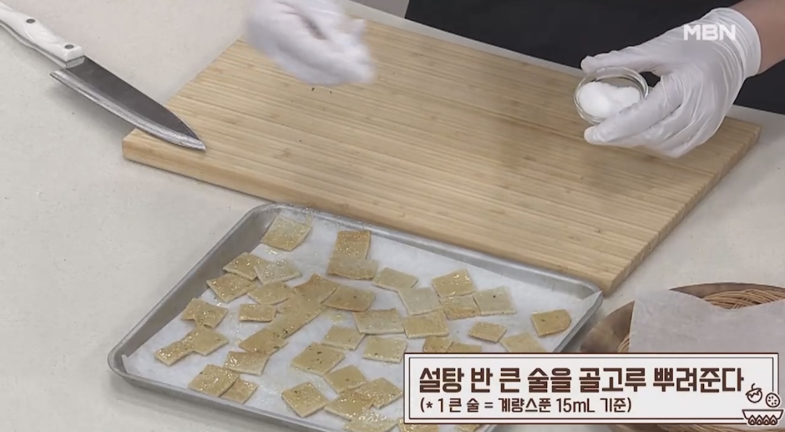 4. 설탕 반 큰술을 골고루 뿌려준다.