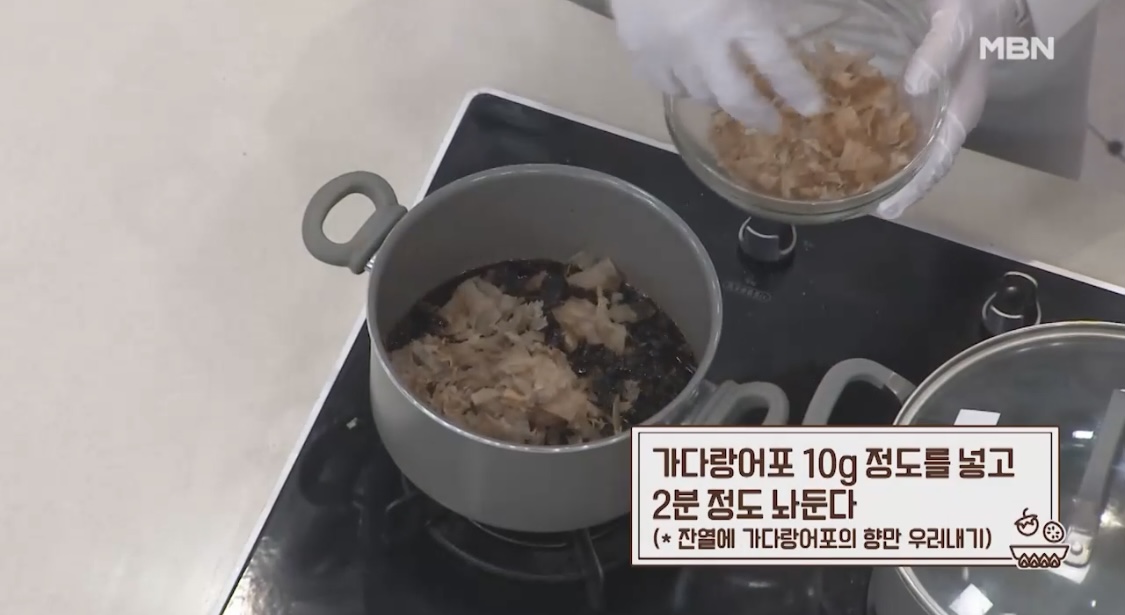 끓어오르면 불을 꺼준다.8. 가다랑어포 10g 정도를 넣고