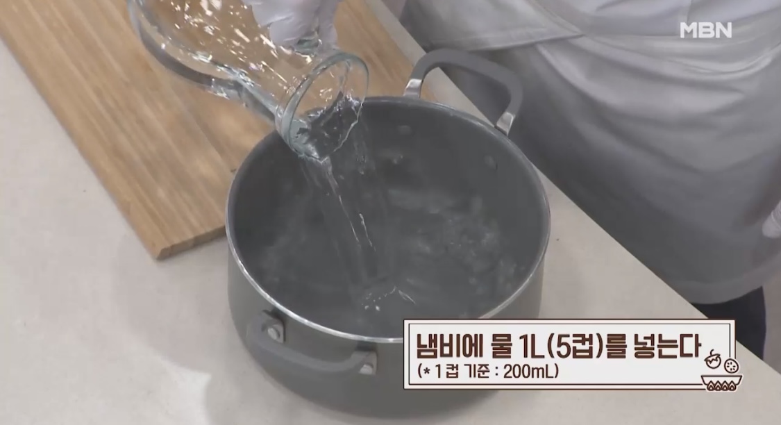 24. 육수 4컵에 짠육수 반컵을 넣고