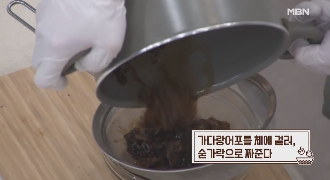 Tip. 잔열에 가다랑어포의 향만 우러내요.9. 가다랑어포를 체에 걸려,