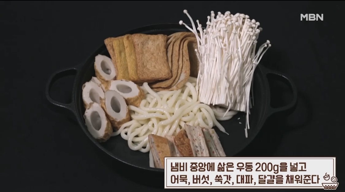간을 맞춰준다.25. 냄비 중앙에 삶은 우동 200g을 넣고