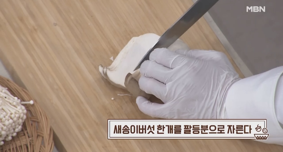 붙어있는 부분은 떼어준다.4. 새송이버섯 한개를 팔등분으로 자른다.